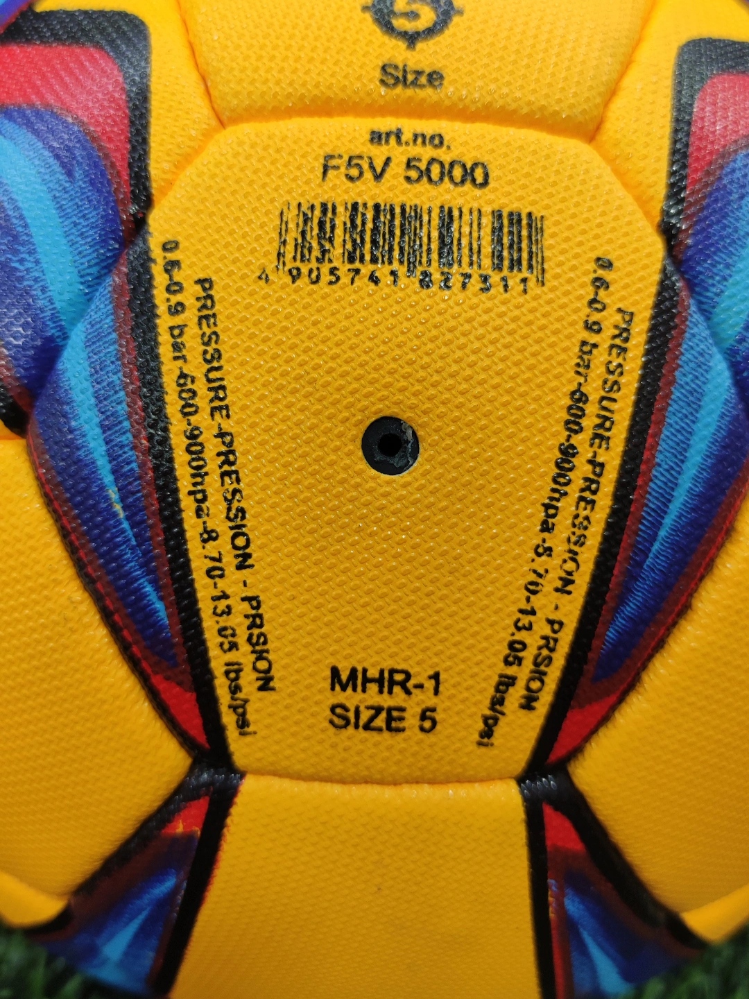 توپ فوتبال دوختی مولتن ونتجیو رنگ زرد دوخت دستی پاکستان سایز پنج زرنگ رویه آجدار مناسب هر نوع زمین فوتبالی وزن توپ 420 گرم طول عمر به شدت بالا