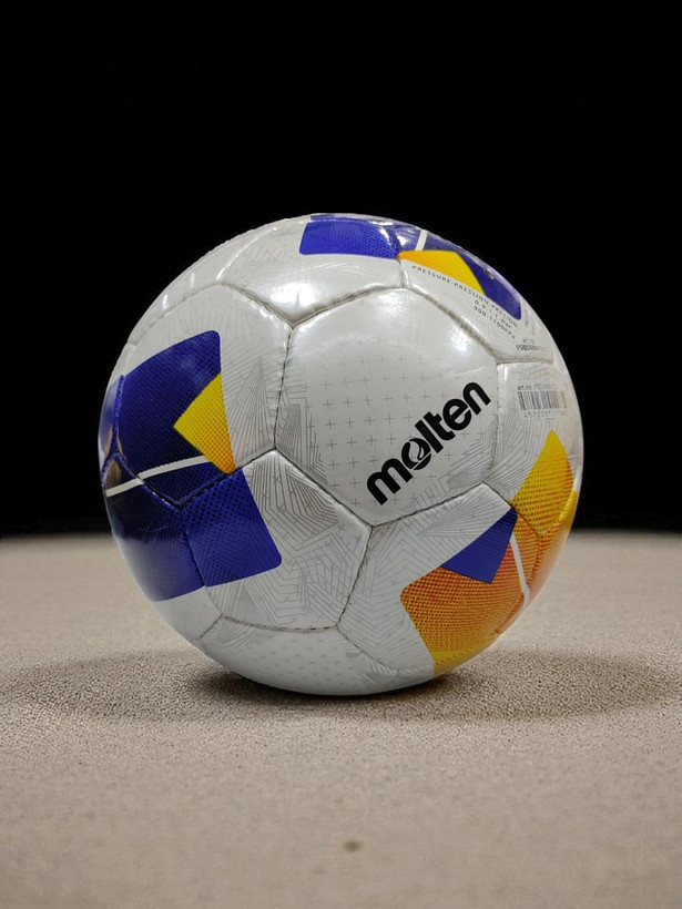 مربع های بزرگ مرکب از رنگ های نارنجی و آبی تیره بر روی توپ خودنمایی می کند و لوگوی AFC، molten و نشان مربوط به مسابقات “AFC CHAMPIONS LEAGUE ELITE” و “AFC CHAMPIONS LEAGUE TWO” نیز در قسمت های مختلف درج شده ا