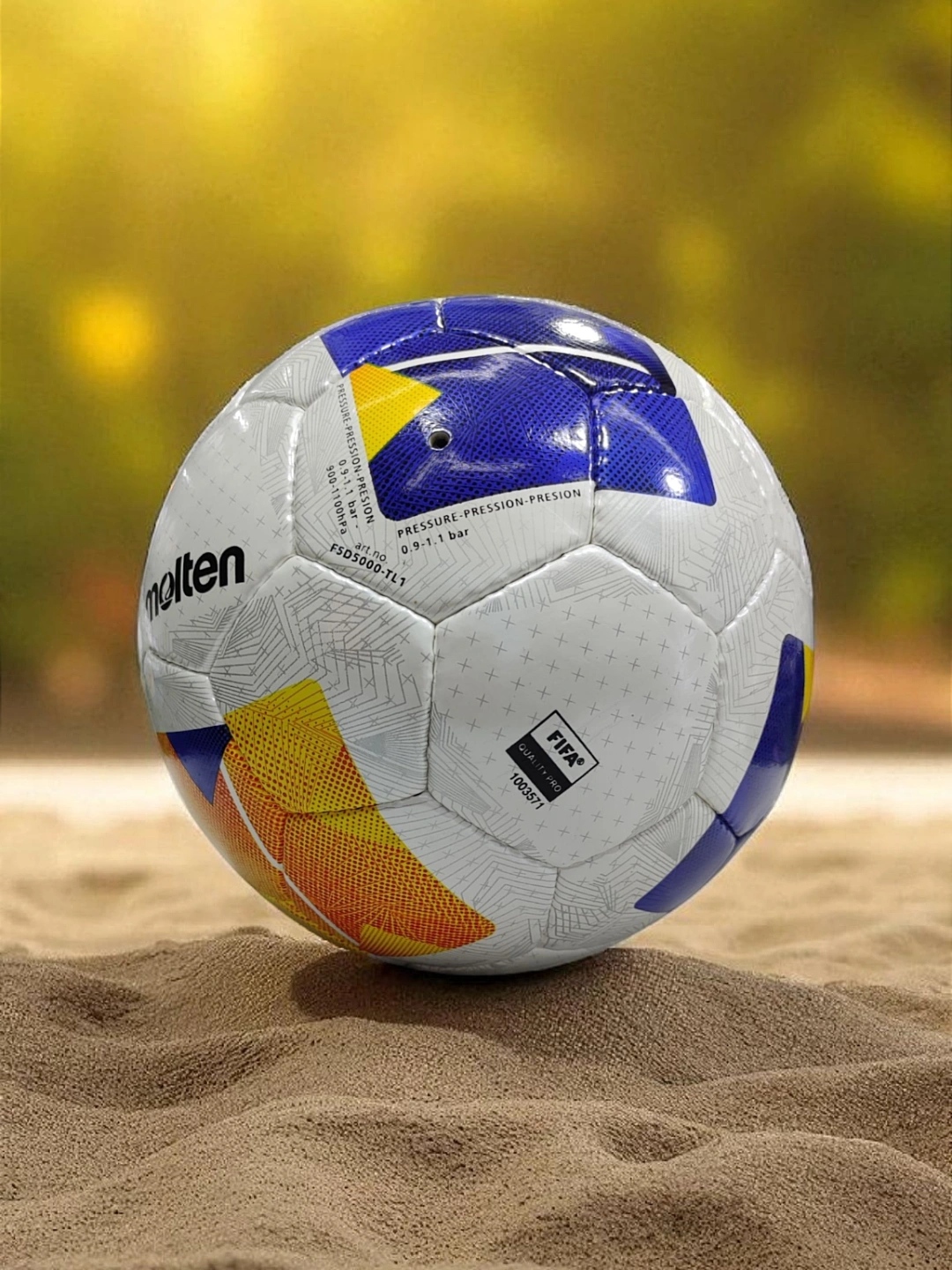مربع های بزرگ مرکب از رنگ های نارنجی و آبی تیره بر روی توپ خودنمایی می کند و لوگوی AFC، molten و نشان مربوط به مسابقات “AFC CHAMPIONS LEAGUE ELITE” و “AFC CHAMPIONS LEAGUE TWO” نیز در قسمت های مختلف درج شده ا