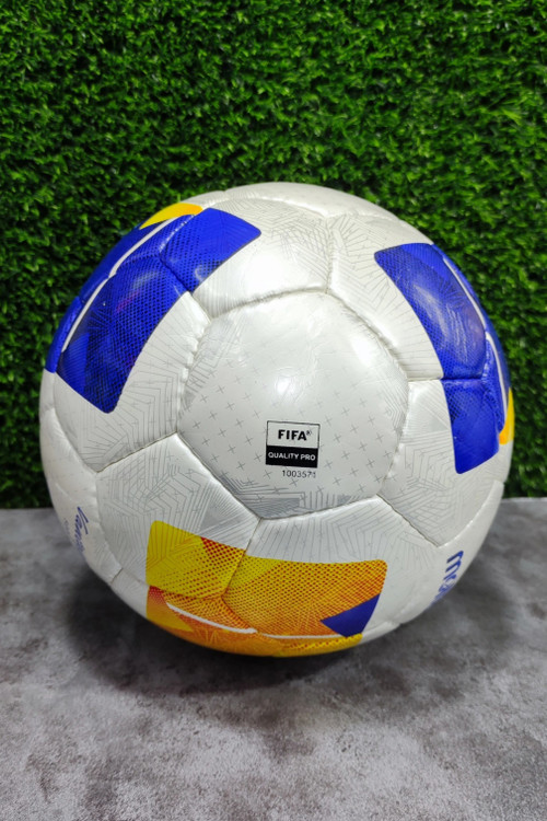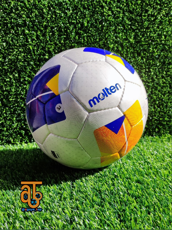 مربع های بزرگ مرکب از رنگ های نارنجی و آبی تیره بر روی توپ خودنمایی می کند و لوگوی AFC، molten و نشان مربوط به مسابقات “AFC CHAMPIONS LEAGUE ELITE” و “AFC CHAMPIONS LEAGUE TWO” نیز در قسمت های مختلف درج شده ا